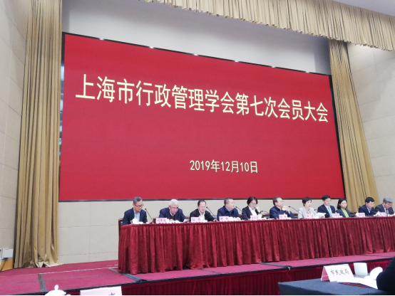 2019年12月10日, 上海市行政管理学会第七次会员代表大会在上海市委党校隆重举行。中共上海市委副秘书长、上海市政府秘书长陈靖,市委组织部副部长、市委编办主任冷伟青,中国行政管理学会常务副会长、秘书长鲍静,上海市社联党组书记、专职副主席权衡,上海市社联党组成员、专职副主席任小文,上海市编办副主任、一级巡视员钱明涛,上海市社团管理局局长蒋蕊等领导和学界代表160余人参加会议。