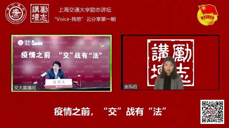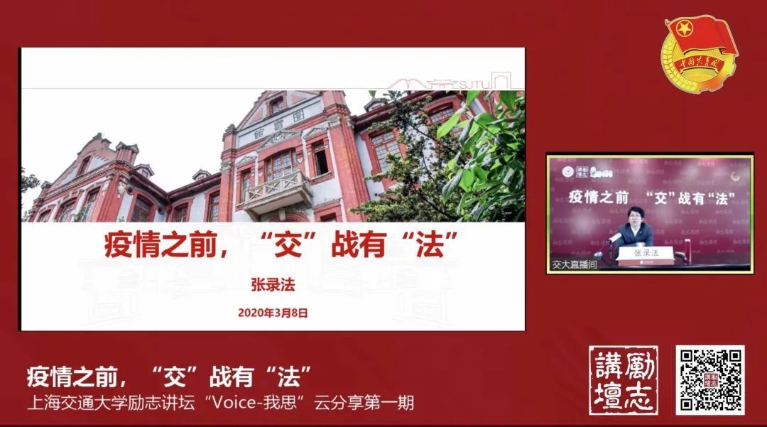 为适应特殊形势下的第二课堂教学,太阳成集团tyc33455cc平台励志讲坛推出“Voice-我思!”云分享系列,以线上讲座的形式,丰富广大师生的“网课”生活,带来新的思考和感悟。2020年3月8日15:00,我院副院长张录法教授做客第1期“Voice-我思!”云分享,讲述抗“疫”战斗中的交大力量。