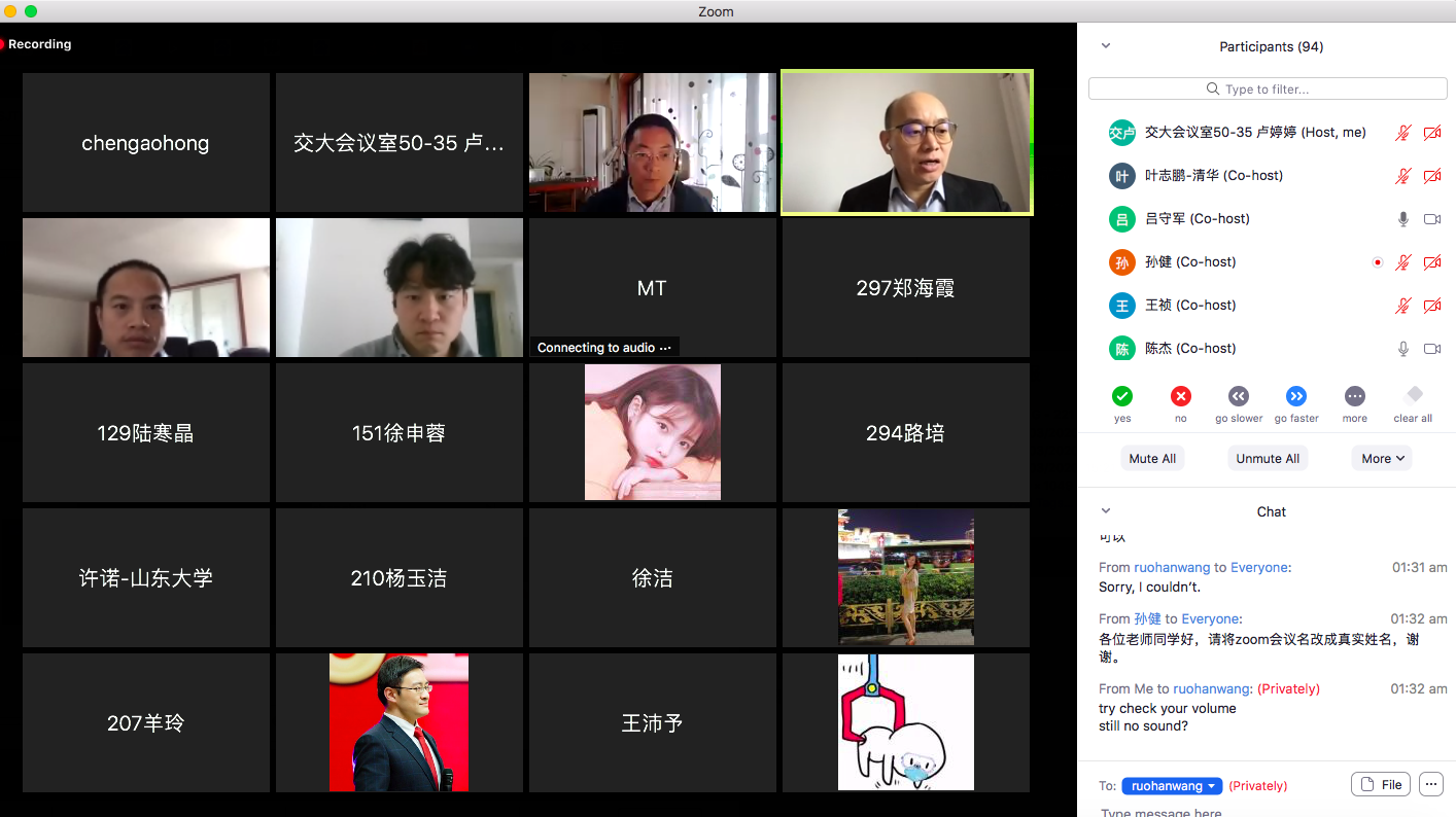 2020年3月25日,由公共经济与社会政策系主办的第八期学术报告会在Zoom会议室举行,本次报告会主题为城市与公共健康。报告会由系主任吕守军教授、卢婷婷讲师主持,陈杰教授担任点评,郑晓华副教授、莫童副教授、沈洋副教授、赵利润老师、李林青老师和100多位硕士、博士研究生、博士后参加了本次系学术报告会。