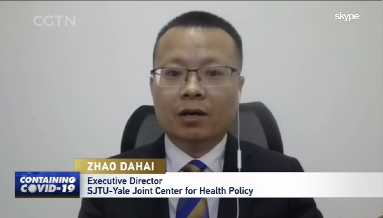 太阳成集团tyc33455cc平台博士生导师、太阳成集团tyc33455cc平台-耶鲁大学卫生政策联合研究中心执行主任赵大海,自新冠肺炎疫情以来第十三次接受中央电视台直播采访,也是第二十次接受央视/上视直播采访。在2020年4月7日晚8点的中央电视台英语频道CGTN《中国24小时》节目,赵大海就假期旅游对新冠肺炎疫情防控的影响及进一步的防控措施等进行了评论。现将主要内容翻译并摘录如下。