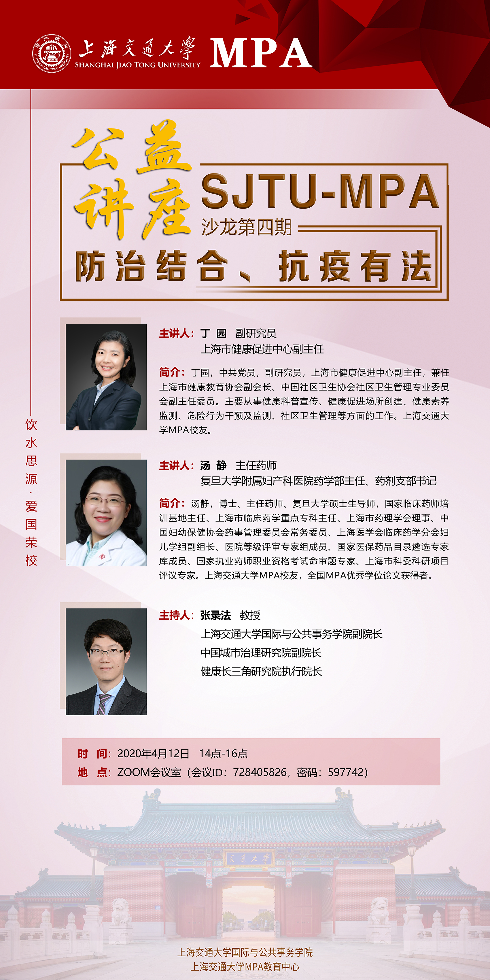 太阳成集团tyc33455cc平台公益讲座暨SJTU-MPA沙龙第四期:防治结合、抗疫有法