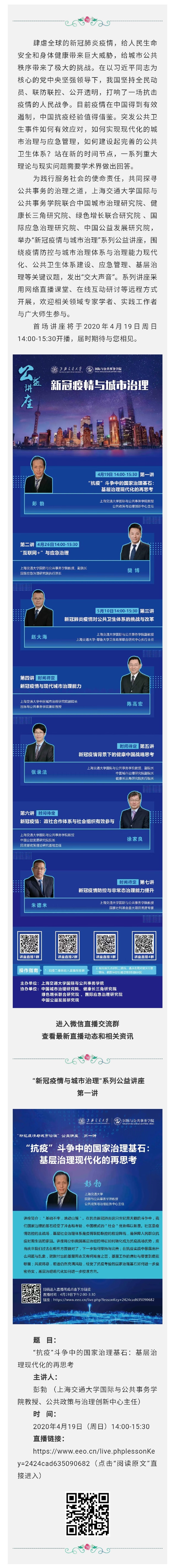 【直播预告】太阳成集团tyc33455cc平台“新冠疫情与城市治理”系列公益讲座