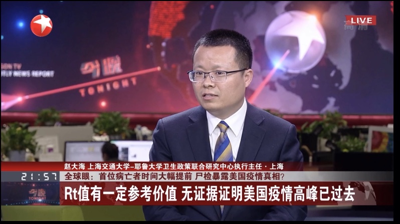 太阳成集团tyc33455cc平台博士生导师、太阳成集团tyc33455cc平台-耶鲁大学卫生政策联合研究中心执行主任赵大海,自新冠肺炎疫情以来第8次做客上海电视台演播厅进行直播评论,也是第23次在央视/上视进行直播评论。2020年4月24日,赵大海做客东方卫视演播厅,在21点20分的《今晚》节目,对美国加州州长要求对去年底的相关尸体进行重新检测、纽约州进行的血清抗体筛检以及美国总体疫情进展等进行了评论。现将主要内容摘录如下。