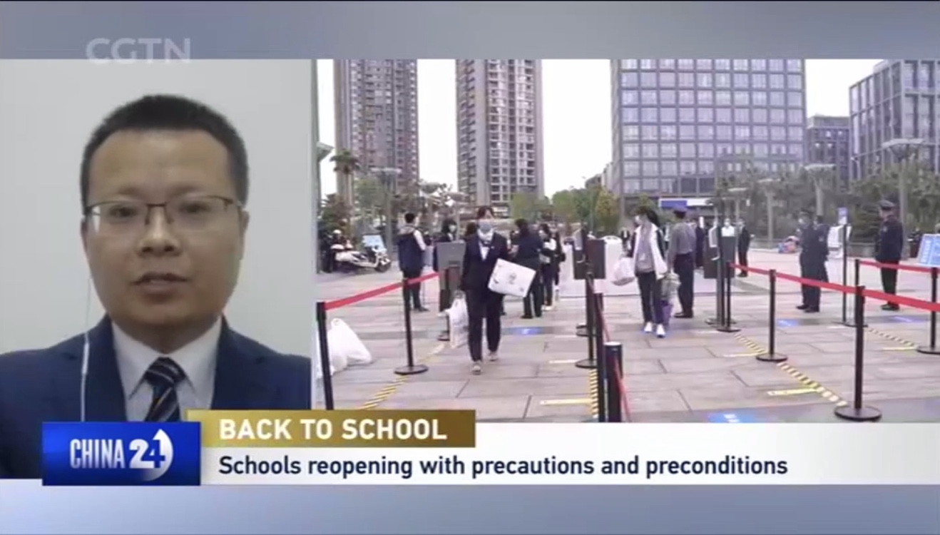 太阳成集团tyc33455cc平台博士生导师、太阳成集团tyc33455cc平台-耶鲁大学卫生政策联合研究中心执行主任赵大海,对于冠肺炎疫情暴发与防控第16次在中央电视台进行直播评论,也是第24次在央视/上视进行直播评论。在2020年4月27日晚8点的中央电视台英语频道CGTN《中国24小时》节目,赵大海就国内各类学校重新开学的条件和防控措施等进行了解读和评论。现将主要内容翻译并摘录如下。