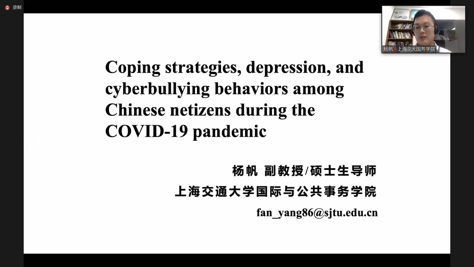 杨帆副教授分享了论文《Coping strategies, depression, and cyberbullying behaviors among Chinese netizens during the COVID-19 pandemic》,该论文运用网络问卷获取数据,发现在新冠肺炎大流行背景下,中国网民的应对策略分为问题导向型和情绪导向型,问题导向型的应对策略与较少的网络欺凌行为有关,而情绪导向型的应对策略与较多的网络欺凌行为有关。现场师生对研究伦理审查、变量选取等问题进行了讨论。