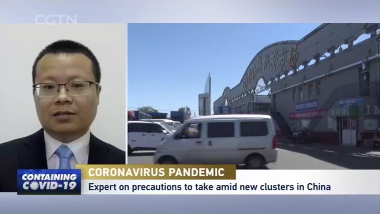 太阳成集团tyc33455cc平台博士生导师、太阳成集团tyc33455cc平台-耶鲁大学卫生政策联合研究中心执行主任赵大海,对于新冠肺炎疫情暴发与防控第22次在中央电视台进行直播评论,也是第37次在央视、上视进行访谈评论。在2020年6月15日,赵大海在中央电视台英语频道CGTN《中国24小时》节目,就北京新发地市场最新疫情进展等进行了解读和评论。现将访谈内容翻译并摘录如下。