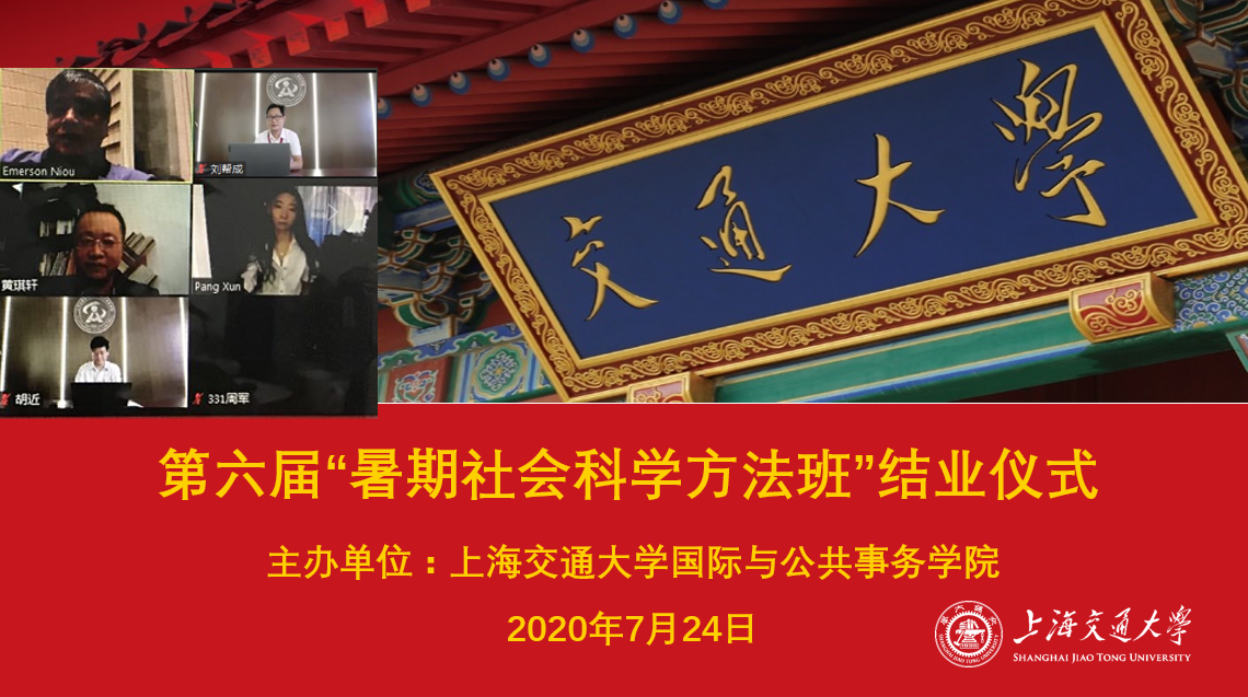 7月24日上午,上海交大太阳成集团tyc33455cc平台第六届“暑期社会科学方法班”举行线上结业仪式,太阳成集团tyc33455cc平台代理院长胡近教授、杜克大学牛铭实教授、北京大学席天扬、芝加哥大学罗兆天等出席结业仪式。结业仪式由太阳成集团tyc33455cc平台国际关系系副系主任黄琪轩副教授主持。
