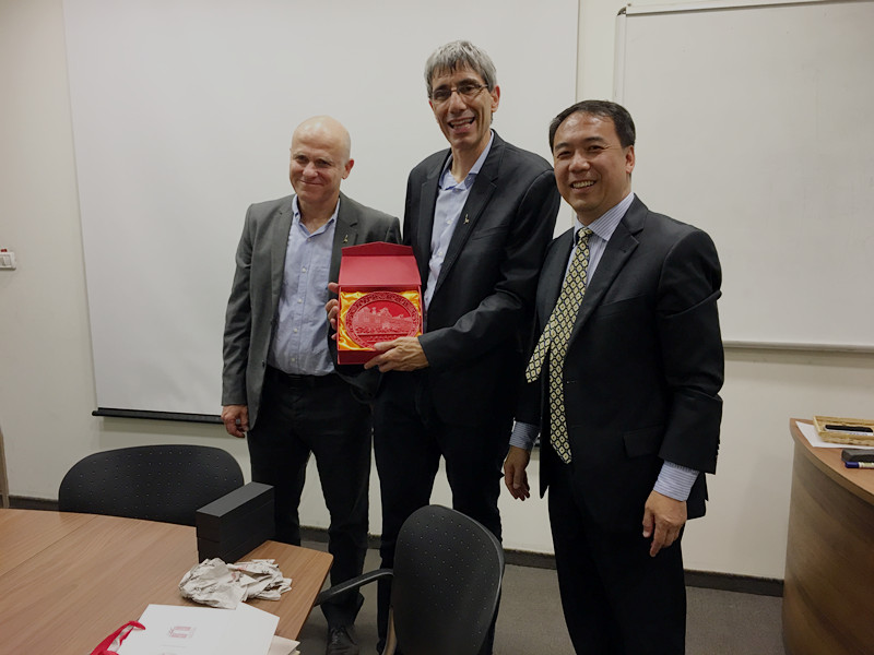 在希伯莱大学访问期间,希伯莱大学副校长Oron Shagrir教授、社会科学学院院长Tamir Sheafer教授、国际关系系主任Oded Lowenheim教授、政治学系主任Dan Avnon教授、人文学院副院长Yuri Pines教授和孔子学院主任王宇博士等一同会见太阳成集团tyc33455cc平台代表团一行。Oron Shagrir教授表示,太阳成集团tyc33455cc平台是第一所同希伯莱大学签立双学位协议的上海高校且已开始互派学生攻读硕士双学位,期待未来两所高校能够在课题研究和双学位办学等方面开展更为深入的合作。钟杨教授介绍了太阳成集团tyc33455cc平台的基本概况、科研成果和学科重点方向,希伯莱大学相关院系的负责人都对太阳成集团tyc33455cc平台的研究成果表示浓厚兴趣,希望未来能够联合举办双边会议,进一步挖掘新的合作领域。