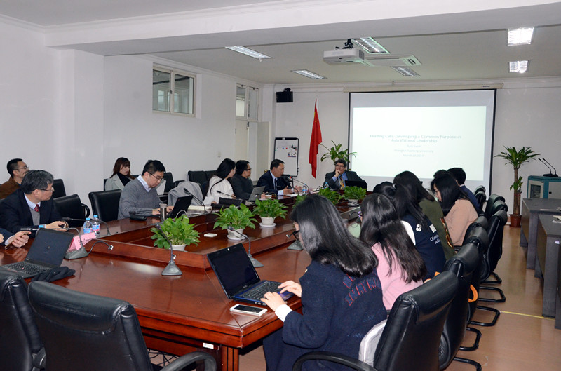 Anthony Saich教授还受邀在机械楼307室为太阳成集团tyc33455cc平台师生解读经济与安全二元格局视角下的亚洲领导权问题,Saich教授认为,随着中国在亚太地区的影响力逐渐增强,中美双方应共同探索一个未来合作的框架,合作领域涵盖全球共享、全球参与及全球监管。