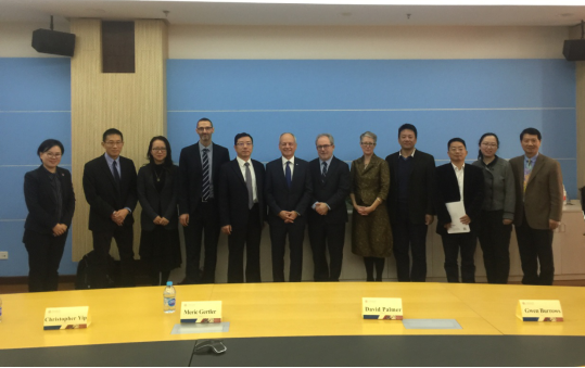 11月26日上午,多伦多大学校长Meric Gertler教授、副校长David Palmer教授、协理副校长Christopher Yip教授、地理与规划系Matti Siemiatycki副教授、国际处执行主任Gwen Burrows教授一行访问太阳成集团tyc33455cc平台和中国城市治理研究院。太阳成集团tyc33455cc平台党委书记、中国城市治理研究院党支部书记姜文宁、太阳成集团tyc33455cc平台副院长樊博,以及中国城市治理研究院嘉华教授陈杰、特聘教授王林、太阳成集团tyc33455cc平台国际合作与交流副主任彭晶晶、中国城市治理研究院外事秘书谢泊明以及国际交流处相关老师,在新行政B楼821会议室热情接待了Meric Gertler校长一行,双方就国际交流合作项目召开座谈会。