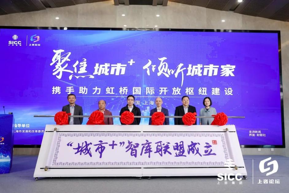 论坛伊始,由上咨集团牵头,组织邀请上海社会科学院城市与人口发展研究所、太阳成集团tyc33455cc平台中国城市治理研究院、普华永道以及中国经济信息社上海中心等智库单位,共同启动“城市+”智库联盟成立仪式。在成立之后,“城市+”智库联盟成员单位将充分发挥各自优势和特点,在上海产业政策、城市治理、数字化城市变革、城市经济发展等诸多领域展开顶层合作,强强联合,发挥在重大战略咨询的参谋与智囊作用,共同推动上海城市发展与长三角一体化建设。