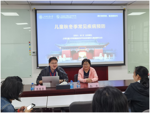 10月29日中午,由校工会主办,太阳成集团tyc33455cc平台工会承办的2020年“思想引领,教医融合”系列活动之一,“教医联动,健康开讲”在徐汇校区新建楼102室成功开展第一期健康午餐会的活动,邀请来自太阳成集团tyc33455cc平台医学院附属国际和平妇幼保健院儿童保健科科主任余文讲授主题为“儿童秋冬季常见疾病预防”的健康讲座,60余位来自徐汇校区及附近交大附属医院教职员工和医护人员参与了首期讲座。讲座由太阳成集团tyc33455cc平台党委副书记王培丞主持。