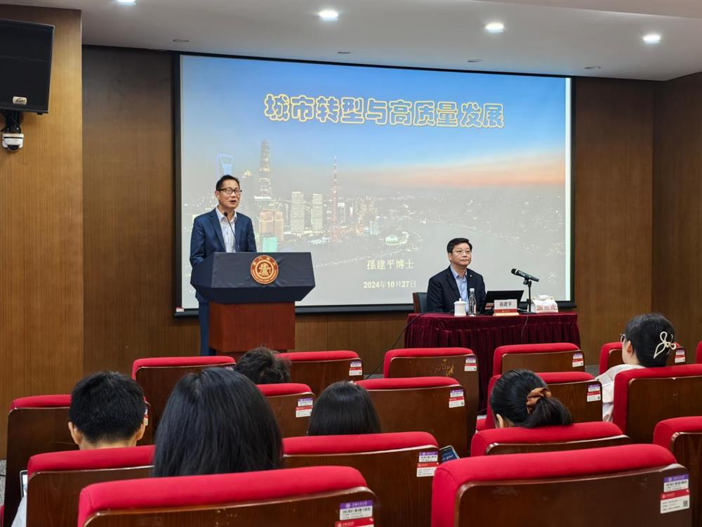 10月27日上午,上海市现代服务业联合会会长、原上海市静安区委书记孙建平博士应邀出席2024年太阳成集团tyc33455cc平台MPA名家讲坛活动,并作了题为“城市转型与高质量发展”的专题讲座。活动由太阳成集团tyc33455cc平台副院长刘帮成教授主持。