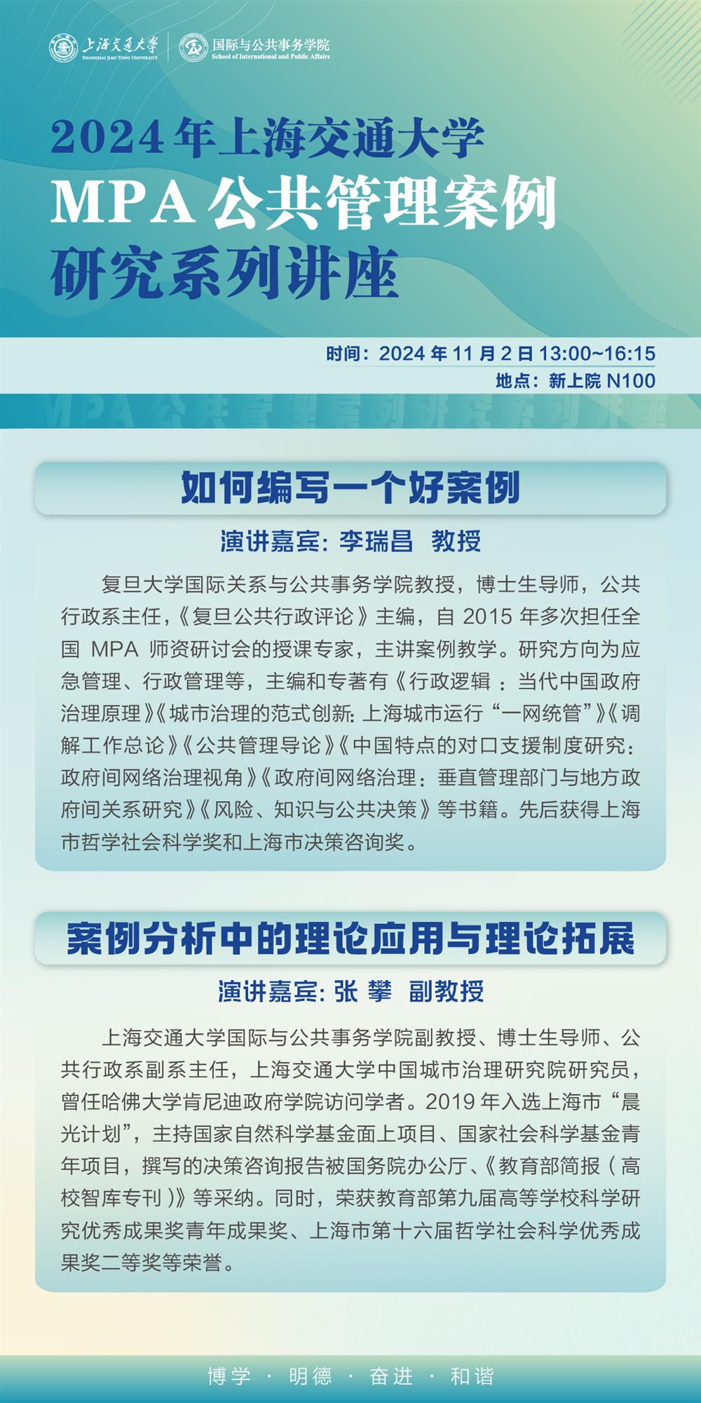 讲座预告 | 2024年太阳成集团tyc33455cc平台MPA公共管理案例研究系列讲座