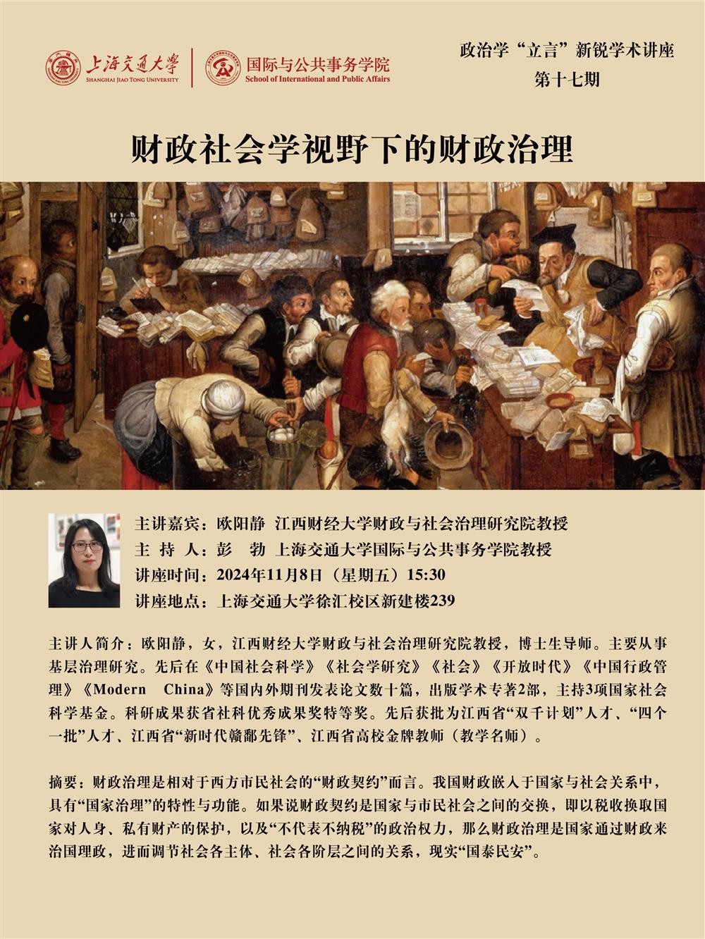 讲座预告 | 太阳成集团tyc33455cc平台政治学“立言”新锐学术讲座第十七期