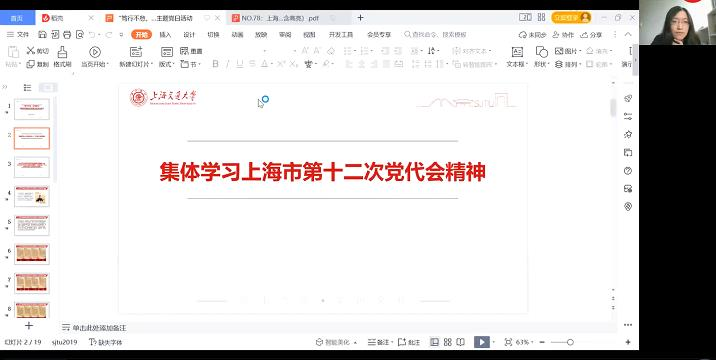 首先,支部党员集体学习上海市第十二次党代会报告,党员同志从过去五年的工作、未来五年的发展蓝图、全市经济社会发展和党的建设各项任务等方面理解本次会议的重要意义。党员同志表示要认真践行习近平总书记提出的重要理念,主动用好习近平总书记提出的科学方法,自觉遵循习近平总书记寄予的谆谆教诲,把学习宣传贯彻市第十二次党代表大会精神作为当前和今后一个时期的重要政治任务,以实际行动迎接党的二十大胜利召开。