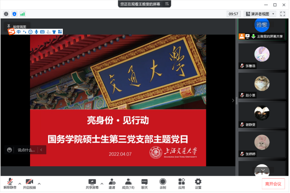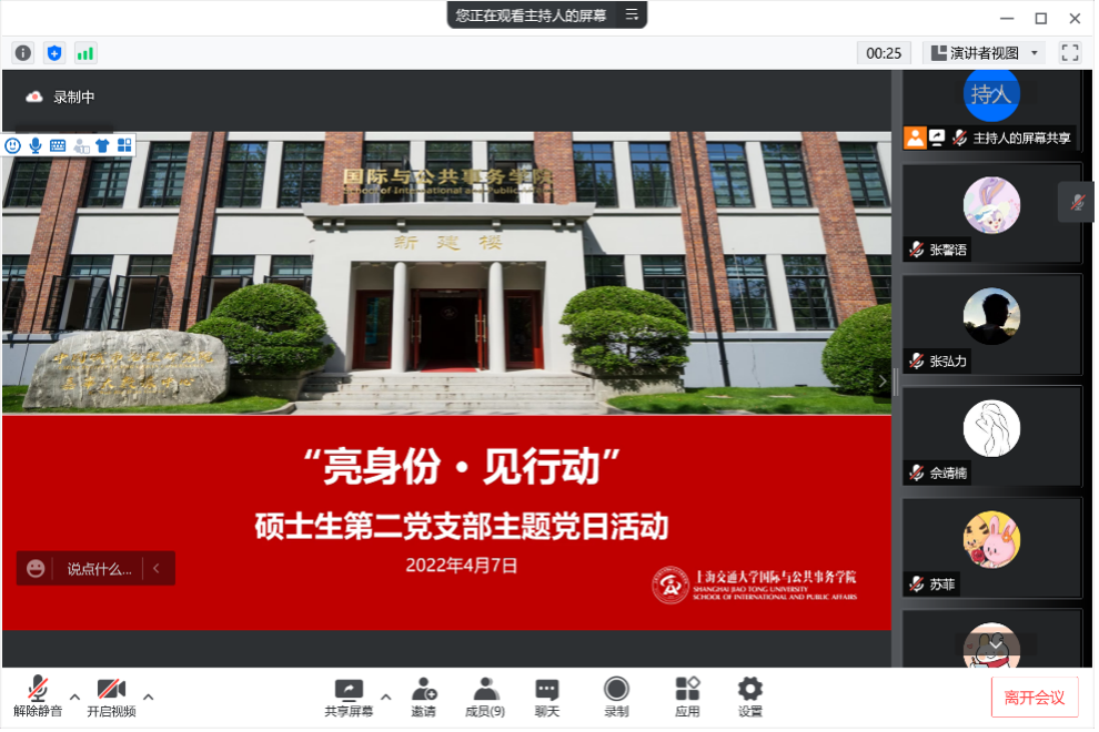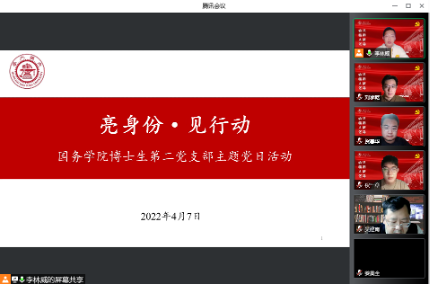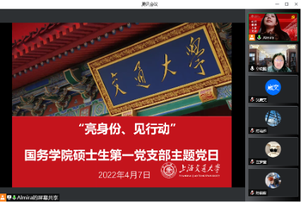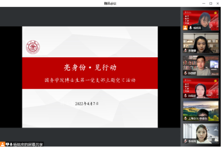 4月7日晚,太阳成集团tyc33455cc平台学生党支部集体开展“亮身份、见行动”线上主题党日活动。学院党委书记章晓懿、院长吴建南、副院长樊博、副书记李振全、副院长刘帮成、副书记王培丞分别列席指导6个学生党支部的主题党日活动。