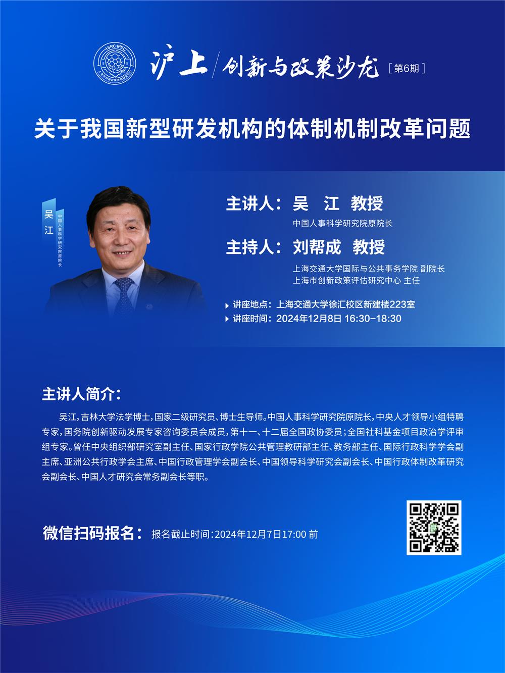 讲座预告 | 沪上创新与政策沙龙(6)