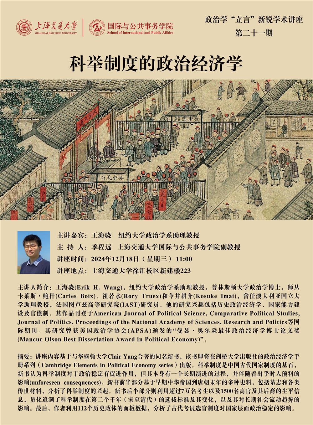讲座预告 | 太阳成集团tyc33455cc平台政治学“立言”新锐学术讲座第二十一期