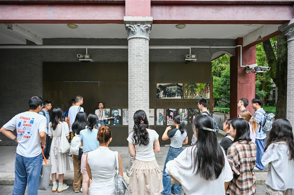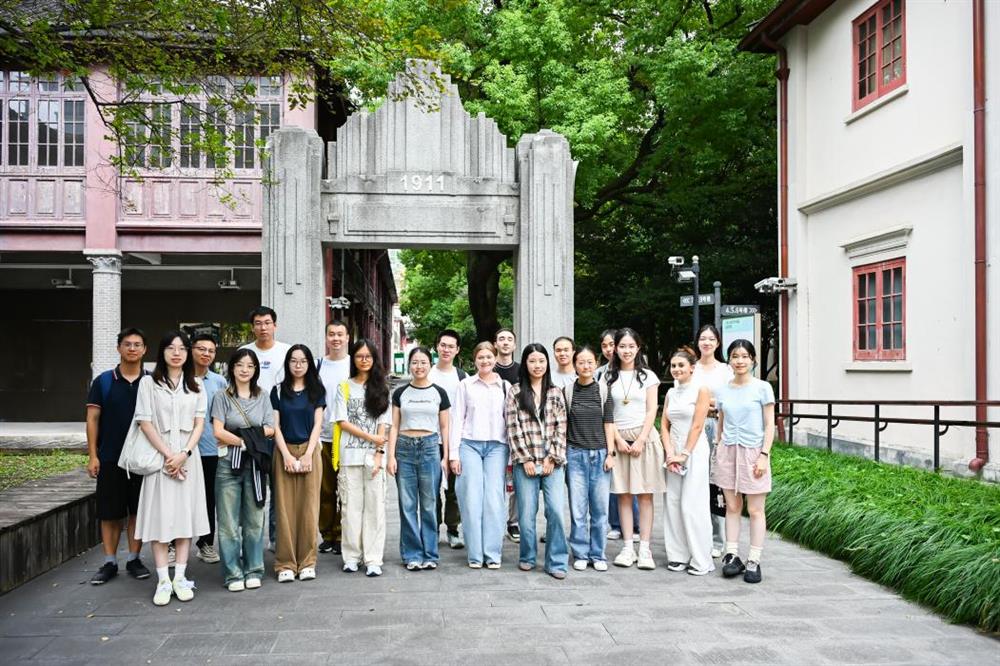 参访首程,园区工作人员以1911年始建的老门楼为切入点,梳理园区百年公益脉络。从陆伯鸿先生秉持“上帝有好生之德”理念参与创办“新普育堂”开始,到20世纪20、30年代远东最大的留养类慈善机构,再到后来的“上海市育儿院”,以及2010年市民政局酝酿筹备公益新天地项目。工作人员还介绍了当前展馆情况——福利彩票中心已撤出、民政博物馆暂闭,目前仅社会组织展示馆对外开放,让同学们对园区的“前世今生”有了更深入的了解。