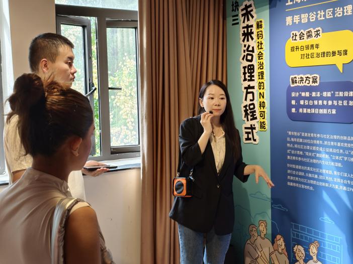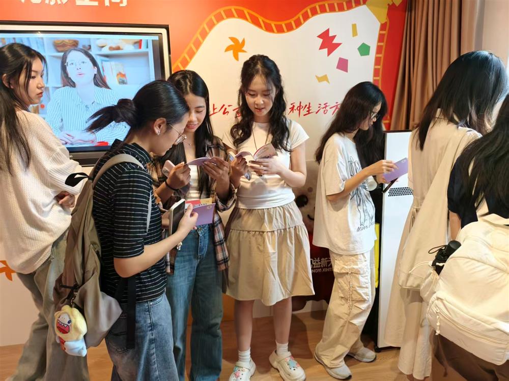 同学们走进社会组织展示馆。馆内聚焦三大板块:弱势群体帮扶领域,“鸡蛋暴走”14年筹集超1亿元惠及154万儿童,“温暖三宝”搭建东西部爱心桥梁;心智障碍与残障人士融入领域,“无声咖啡”由听障人士运营,孤独症儿童服务通过徒步训练提升社交能力;青年参与社会治理领域,“青年智库”项目每年招募青年设计社区治理方案。实物模型、互动盲盒与扫码故事,让公益成果可触可感。